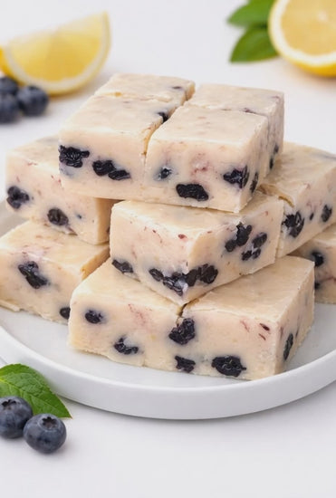 Brighten your day with our refreshing blueberry lemonade fudge, a creamy delight stuffed with plump blueberries and zesty lemon notes. This vibrant fudge captures the essence of summer, blending sweet blueberry bursts with tangy lemonade swirls for a melt-in-your-mouth treat. Perfect for fans of fruity, creamy fudge with a citrus kick.